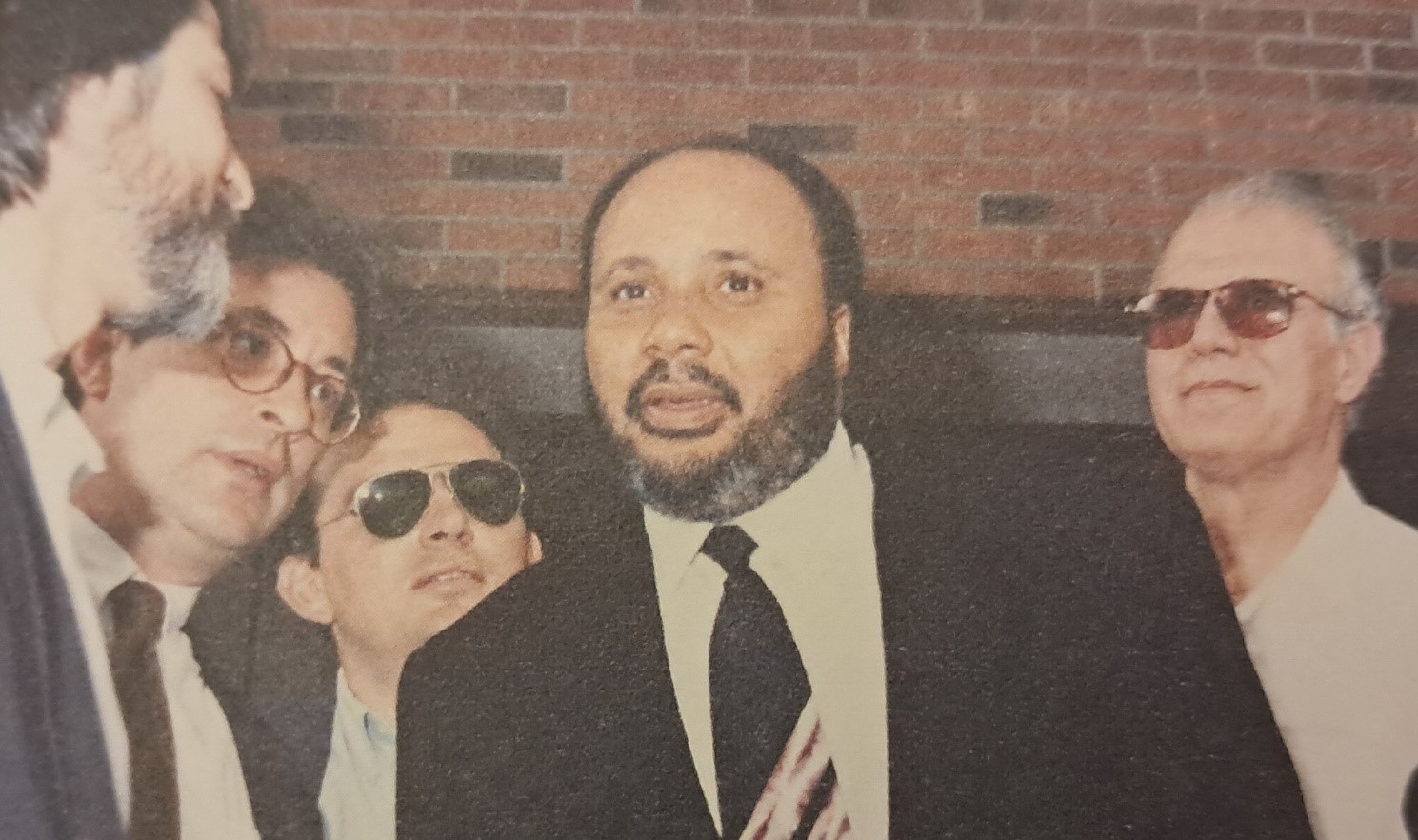 Ο γιος του Μάρτιν Λούθερ Κινγκ, μπροστά στο άγαλμα του πατέρα του σε κεντρική τράπεζα της Ατλάντα*, μιλάει στους Έλληνες δημοσιογράφους που είχαν συνοδεύσει τον αείμνηστο Πρόεδρο της Δημοκρατίας, Κωστή Στεφανόπουλο σε επίσημο ταξίδι στις ΗΠΑ. Δεξιά, πίσω από τον Κινγκ, ο γράφων.