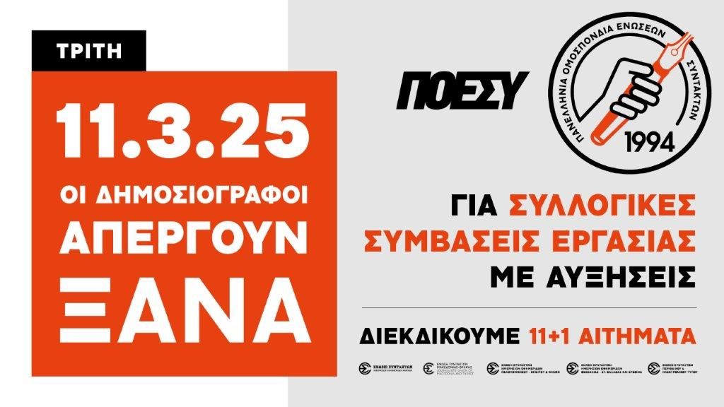 11 Μαρτίου: Οι δημοσιογράφοι απεργούν για Συλλογικές Συμβάσεις Εργασίας με αυξήσεις